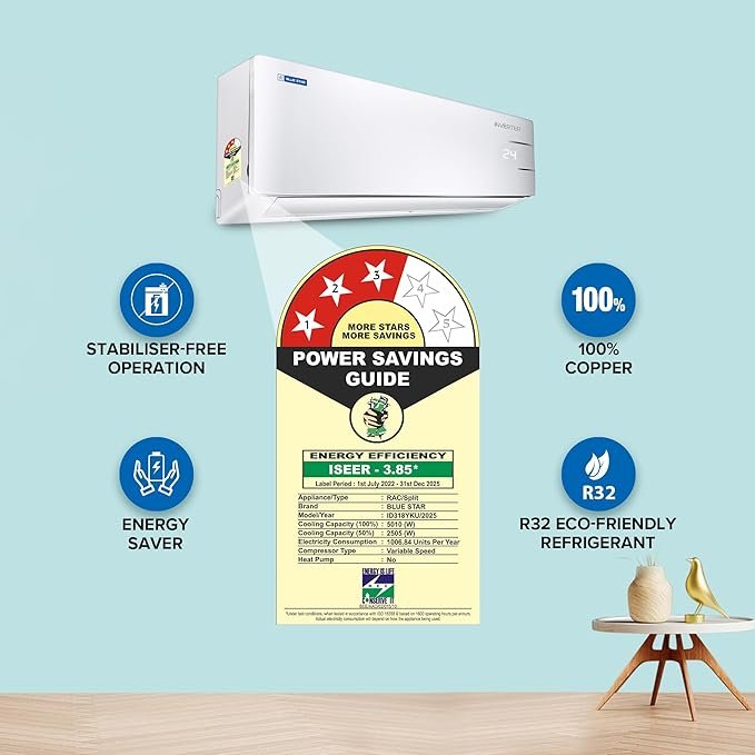 With its balanced energy efficiency, uniform airflow design, and smart comfort features, this air conditioner ensures a pleasant indoor environment even during peak summer heat. Durable components, eco-friendly refrigerant, and Blue Star’s trusted build quality make it a practical and long-lasting cooling solution for modern homes.