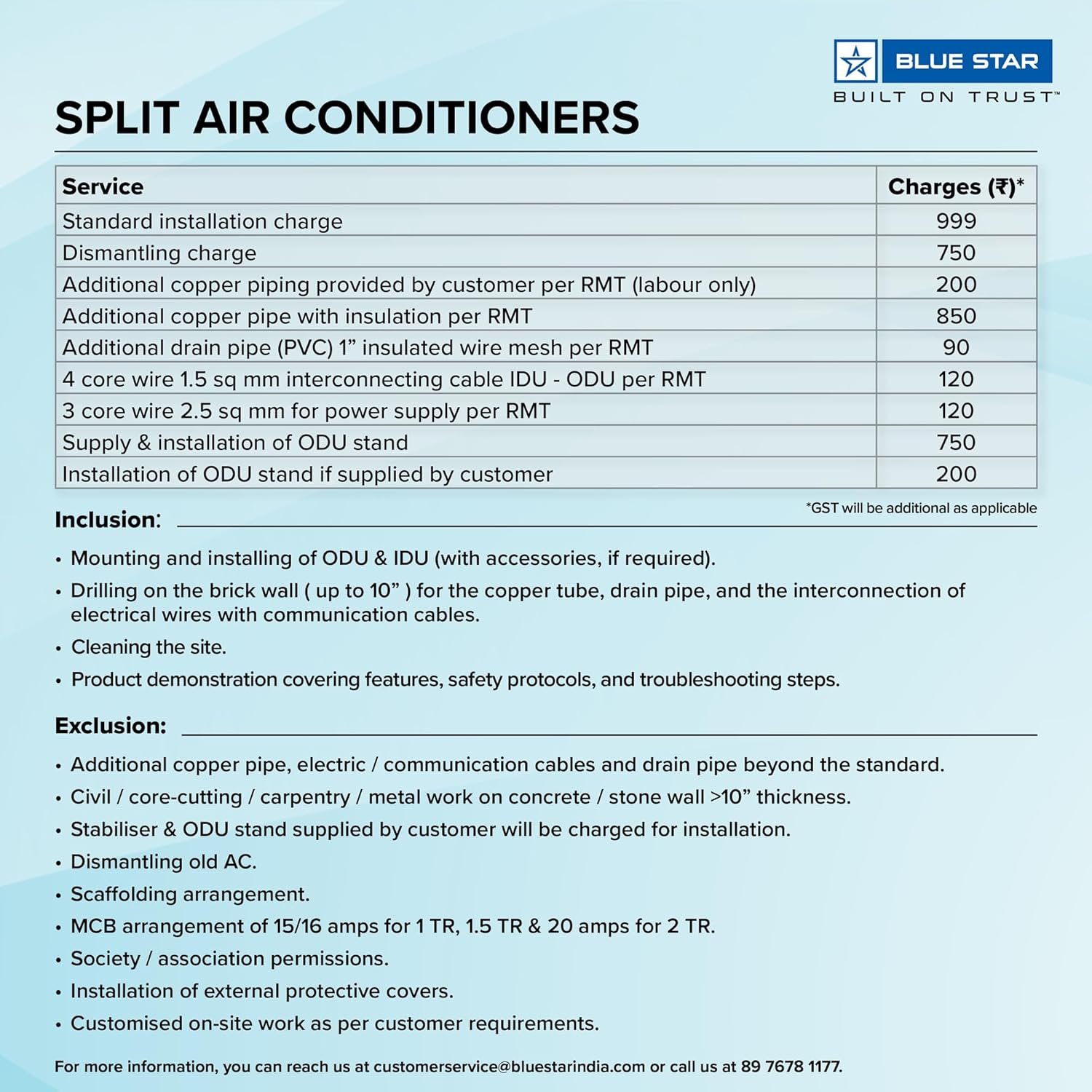 Be the first to review “BLUE STAR 1.0 TR 3 STAR INVERTER SPLIT AC”